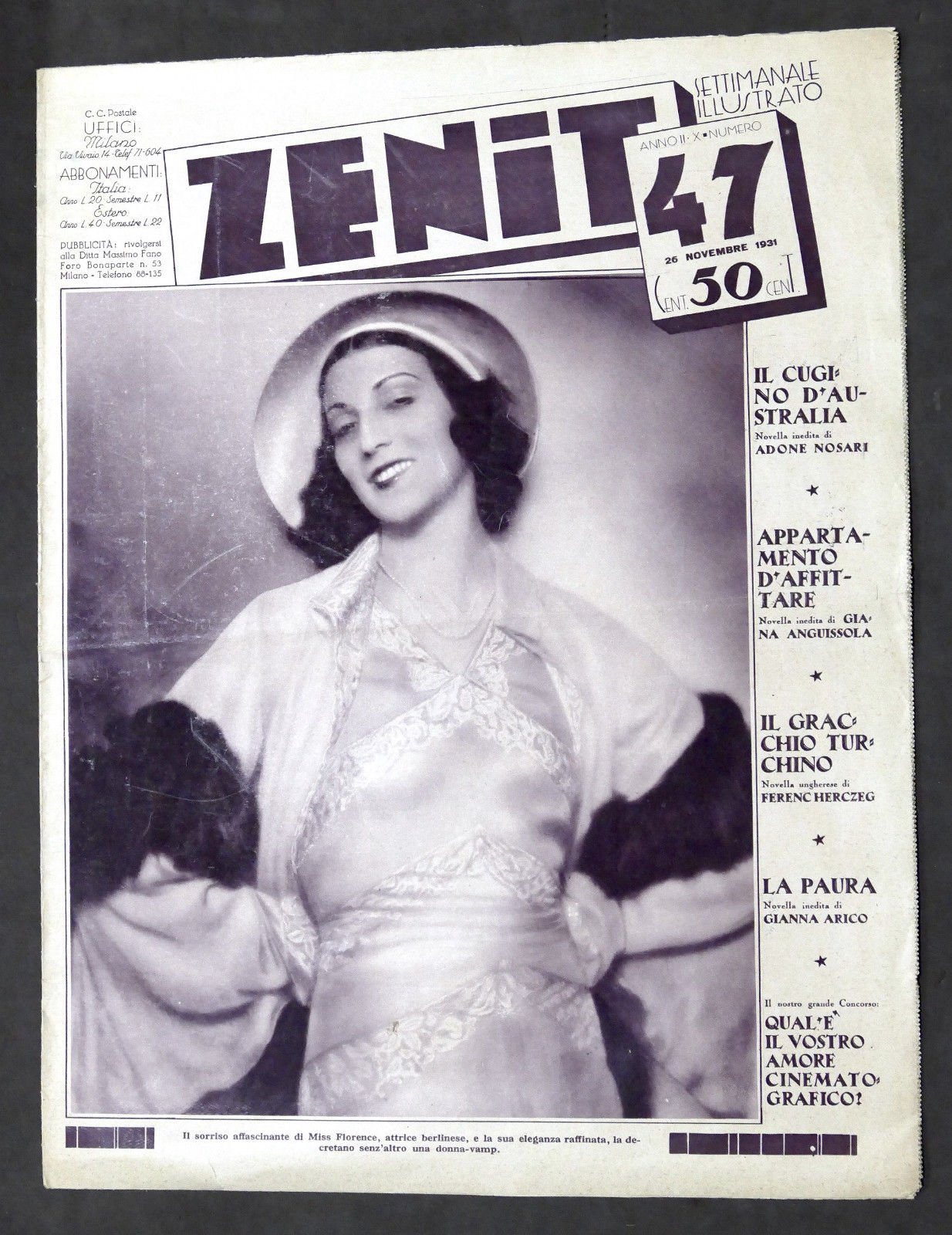 Cinema - Rivista Zenit - N° 47 - 26 novembre 1931 - Miss Florence
