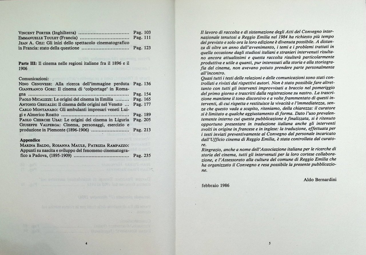 Cinema e Storiografia in Europa Libro Aldo Bernardini Convegno Reggio Emilia '84