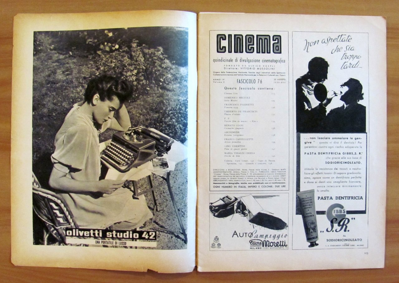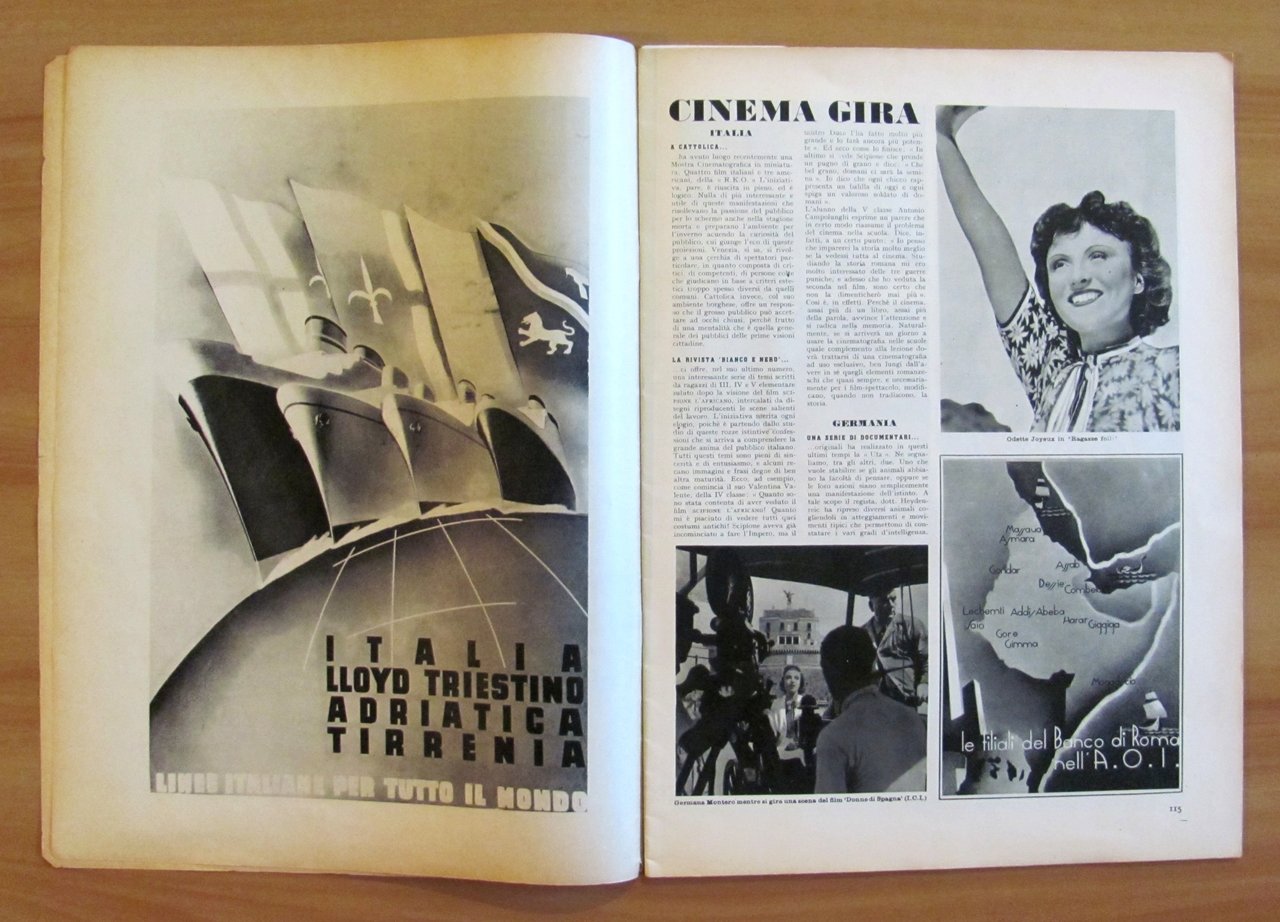 Tom Mix, Totò, Cary Grant, tante belle pubblicità... N. 76 - 25 Agosto 1939. Brossura editoriale con imperfezioni del tempo al dorso e piccola mancanza al margine basso della retrocopertina. Da pagina 133 a 136 piccolo strappo in alto. 24x32,5; pp. da 113 a 147. RARO. BUONISSIMO STATO , Molto buono (Very Good)