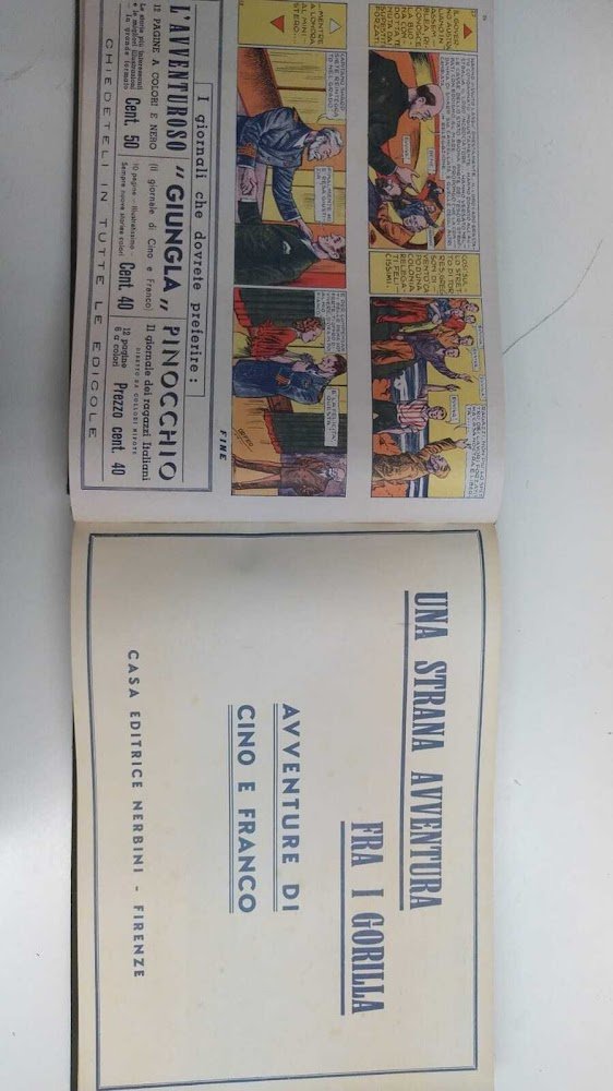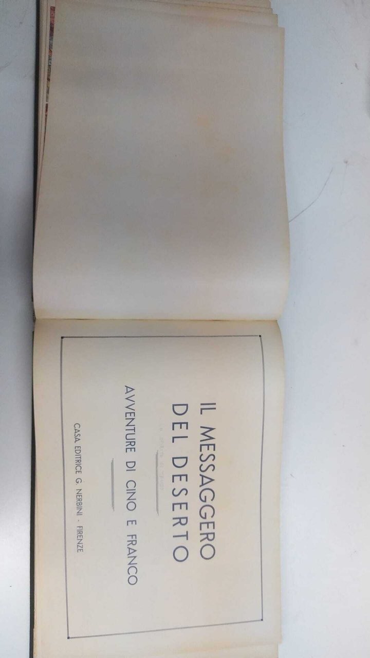 Raccolta di storie Cino e Franco con rilegatura rigida artigianale. Buone condizioni. Sotto la bandiera ... La misteriosa fiamma .., La pattuglia dell'avorio, La tribù degli uomini leopardi, Il ragno ritorna, Gli avvoltoi dello stretto... Avventura tra i gorilla, Nel favoloso regno del passato, Falso stregone, la regina dei pirati , Il messaggero del deserto, L elefante bianco, il coccodrillo sacro, Tom Beros, Il mercante d'avorio, Foresta in fiamme, Bolo e Billy, Isole gemelle, Il terrore della giungla Buono (Good) .