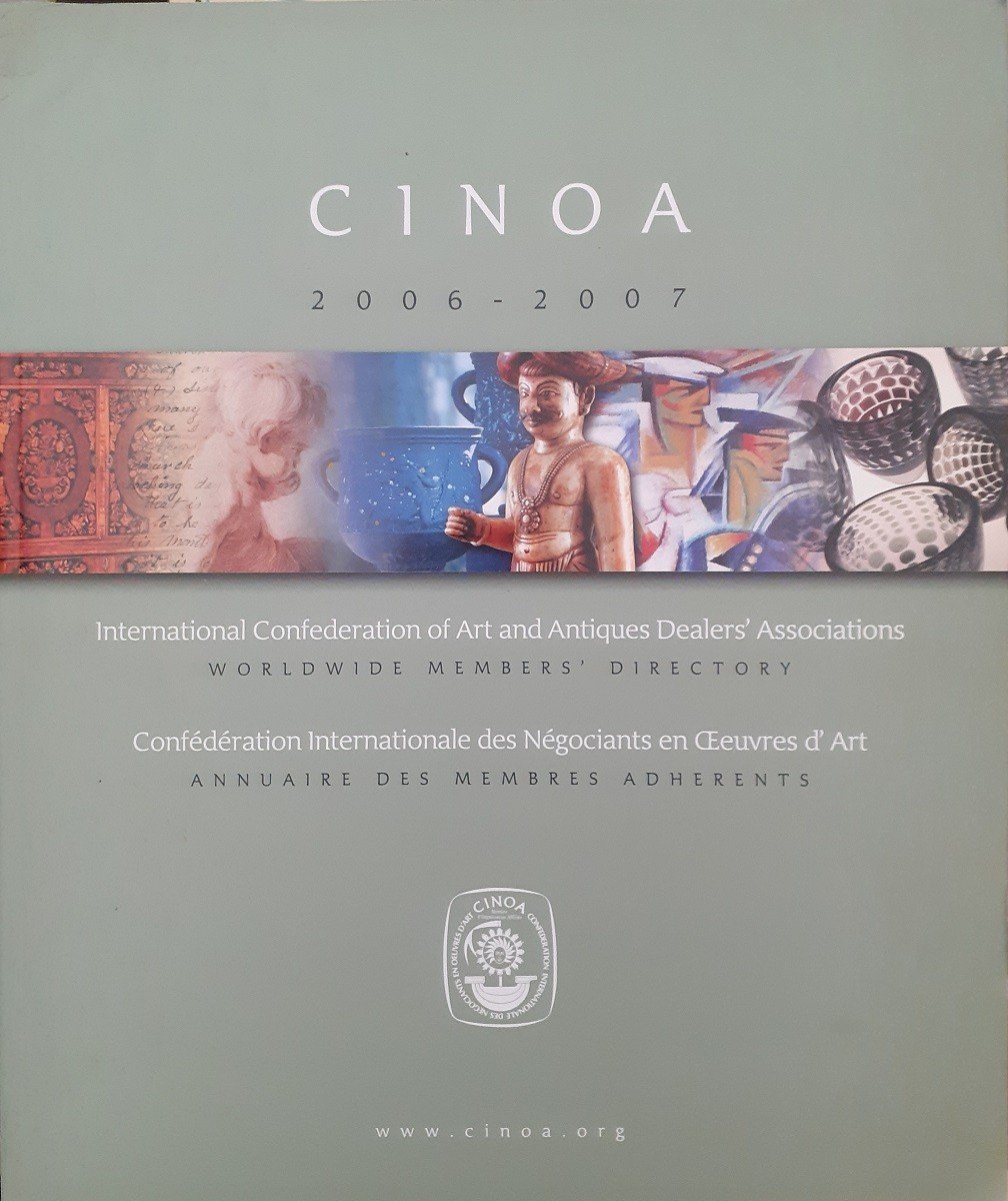 CINOA (Internatioal Confederation of Art and Antiques Dealers’ Associations, Confédération Internationale des negociants en oeuvres d’art), Worldwide members’ directory. Annuaire des membres adherents. 2006-2007, Publications UK Limited, London 2006, pp. 386, ill. col., cm 27, br. ed. Descrizione effettuata sulla base della prima di copertina. Pubblicazione in lingua inglese. Catalogo dei membri CINOA, edizione 2006-2007. Un colpetto al dorso, lievi tracce d’uso, per il resto ben conservato.