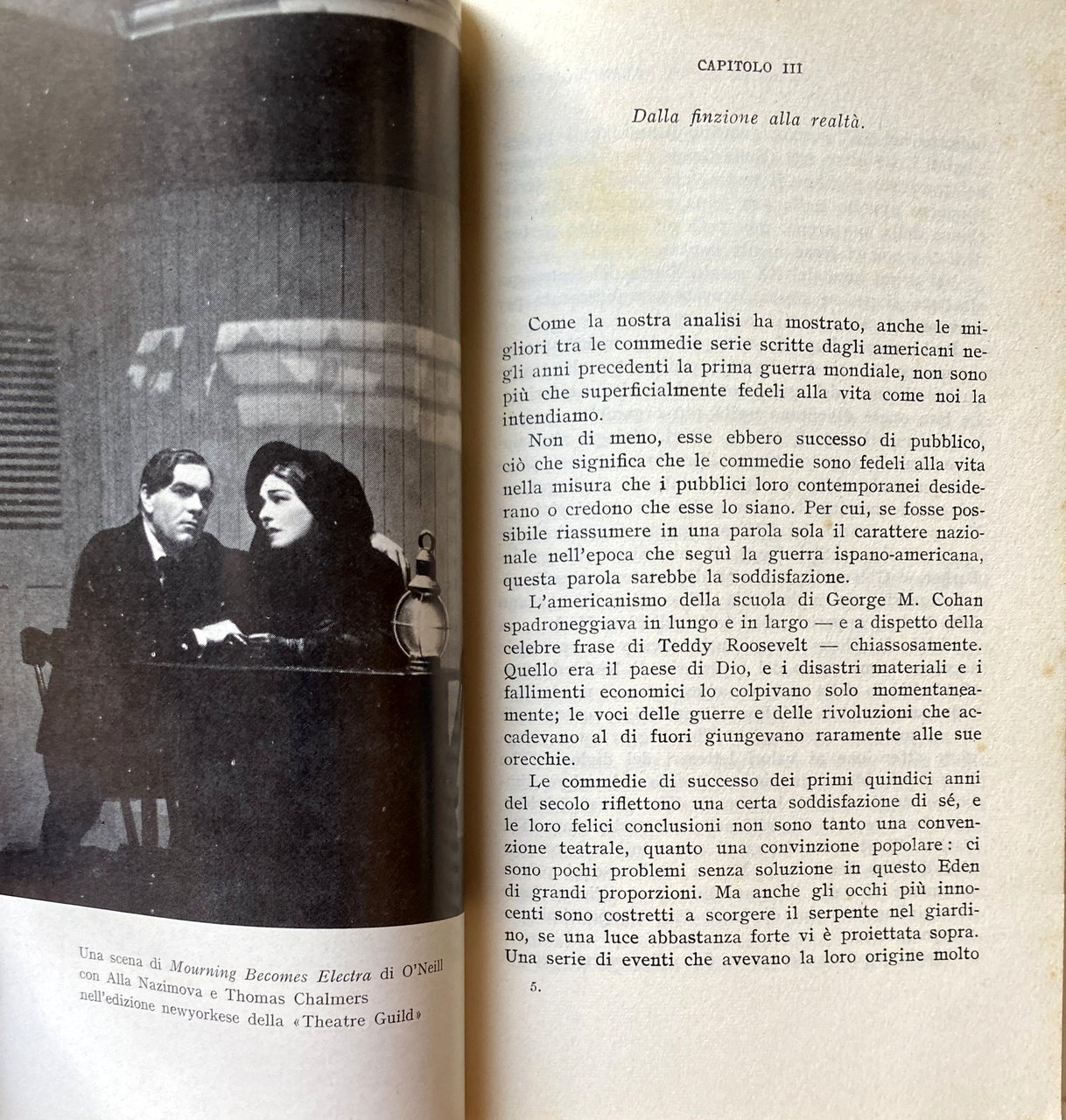 Soggetti: Critica teatrale, Teatro americano, Letteratura americana, Storia, Romanzo, Testi teatrali, Opere generali, Registi, Attori, Poetica, Cultura, Romanzi, Scene, Sceneggiature, Scenografia, Scena, Allestimenti, Costumi, Interpretazione, Personaggi, Divi, Dive, Divismo, Collezionismo, Libri illustrati rari Vintage fuori catalogo, Silvio D'Amico, Politica, Libertà, Dopoguerra, Europa, Fascino, Fascismo, Novecento, Drammaturgia, Drammi, Dramma popolare, Farsa, Commedia Comica, Tragedia, Atti, Commedie, Comico, Estetica, Teatralismo, New York, Finzione, Realtà, Quarta parete, 1951, Consultazione, Riferimento, Bibliografia, Letture suggerite, Recensioni, Capolavori, Produzione, Fruizione, Pubblico, Spettacoli, Successi, Chicago Tribune, Anni Quaranta, Anni Cinquanta, Anni Sessanta, Anni Settanta, Anni Venti, Anni Trenta, Censura, Anni Dieci, Classici, Donne, Dialoghi, Simbolismo, Realismo, Sidney Howard, Stage, Audience, Playwright, Scrittori, Melodramma, Mourning Becomes Electra, Action, Aubrey, The Crucible, Inge, Picnic, Belasco, Billy Budd, Broadway, Butterfly, Clifford Odets, Clyde Fitch, Cohan, Hero, Conflitti sociali, Convenzionale, Crockett, Cinismo, Morte, Effetti speciali, Exploit, Espressionismo, Finale, FULTON, Kingsley, Hellman, Heroine, Ibsen, Jinny, Kaufman, Living, Lulu, Matrimonio, Mimo, Maschere, McCarver, Miss Lulu Bett, Moody, Mourning Becomes Electra, Musical, Naturalismo, Nativi, Indiani, Indigeni, Neri, Negri, Razzismo, Rappresentazione, Eugene O'Neill, Philip Barry, Plot, Ragan, Rose Tattoo, S. N. Behrman, Scarecrow, Sentimentale, Setting, Sing, Spettatori, Linguaggio, Inglese, Stockmann, THROTTLEBOTTOM, Tradizione, Vaudeville, Villains, Well-made, Battute, Wisecrack, Idea, Varietà, Cattivi, Mostri, Guerra, Folk, Tematiche, Trama, Gelosia, Omicidio, Tradimento, Amore, Amicizia, Claudia Cassidy, William Charles Macready, Tennessee Williams, Bigger, Brighter, Louder, Zoo di vetro, The Glass Menagerie, Lieto fine, Recitazione, Scrittura, Pièce, Sidney Poitiers, Claudia McNeil, Ruby Dee, Gusto, Blanche DuBois, Un tram che si chiama desiderio, Catarsi, Cabaret, Cinema, Lillian Hellman, Arthur Miller, Edward Albee, Sam Shepard, David Mamet, Sperimentazione, Gruppi, Group Theatre, Thornton Wilder, Federal Theatre Project, Stagione, Anni tranquillizzati, Afroamericano, Rinascimento, Harlem, Langston Hughes, FTP, Lorraine Hansberry, Boston, Direttori, Impresari, Arthur Hobson Quinn, Helen Deutsch, Stella Hanau, The Province Town, Arena, Hallie Ferguson Flanagan, The Fervent Years, Harold Clurman, John Mason Brown, Ward Morehouse, George Jean Nathan, Scrapbook, Tankful Mother, Processional, Elia Kazan, Death of a Salesman, Philip Barry, S. N. Behrman, Uncle Tom's Cabin, Ben Hur, Kolossal, Blue Jeans, Dos Passos, Sinclair Lewis, Masters, William Saroyan, Caldwell, Elettra, Anticonformismo, Ribellione, Puritanesimo, Antiretorica, Kazin, Hemingway, Carlos Baker, Edmund M. Gagey, The Country Girl, Darkness at Noon, Romanticismo, Stefan Brecht, Herman J. Mankiewicz, La guerra lampo dei fratelli Marx, Vincent Canby, William Styron, Elwyn Brooks White, Lee Strasberg, The Time of the Cuckoo, Stella Adler, Edgar Selwyn, Theater, Theatre, Guild, Brockton, Madison, Eugenio Walter, Music Hall, Weber, Fields, Intreccio, Maxwell Anderson, Thornton Wilder, George Ade, Hoyt, Kaufman, Samuel Spewack, Theater criticism, American theater, American literature, History, Novel, Theatrical texts, General works, Directors, Actors, Poetics, Culture, Novels, Scenes, Screenplays, Scenography, Scene, Productions, Costumes, Interpretation, Characters, Stars, Divas, Stardom, Collectables, Rare illustrated books out of print, Politics, Freedom, Post war, Europe, Charm, Fascism, Twentieth century, Dramaturgy, Dramas, Popular, Farce, Comedy, Tragedy, Acts, Comedies, Comic, Aesthetics, Theatricalism, Fiction, Reality, Fourth Wall, Reference, Bibliography, Suggested Reading, Reviews, Masterpieces, Production, Enjoyment, Hits, Forties, Fifties, Sixties, Seventies, Twenties, Thirties, Censorship, Tens, Classics, Women, Dialogues, Symbolism, Realism, Writers, Melodrama, Social Conflicts, Conventional, Cynicism, Death, Special Effects, Expressionism, Final, Marriage, Mime, Masks, Naturalism, Natives, Indians, Indigenous, Blacks, Negroes, Racism, Sentimental, Spectators, Language, English, Tradition, Jokes, Variety, Villains, Monsters, War, Themes, Jealousy, Murder, Betrayal, Love, Friendship, Happy ending, Acting, Writing, Taste, A Streetcar Named Desire, Catharsis, Experimentation, Bands, Tranquilized Years, African American, Renaissance, Directors, Entrepreneurs, Nonconformism, Rebellion, Puritanism, Anti-rhetoric, Romanticism, Blitzkrieg of the Marx Brothers