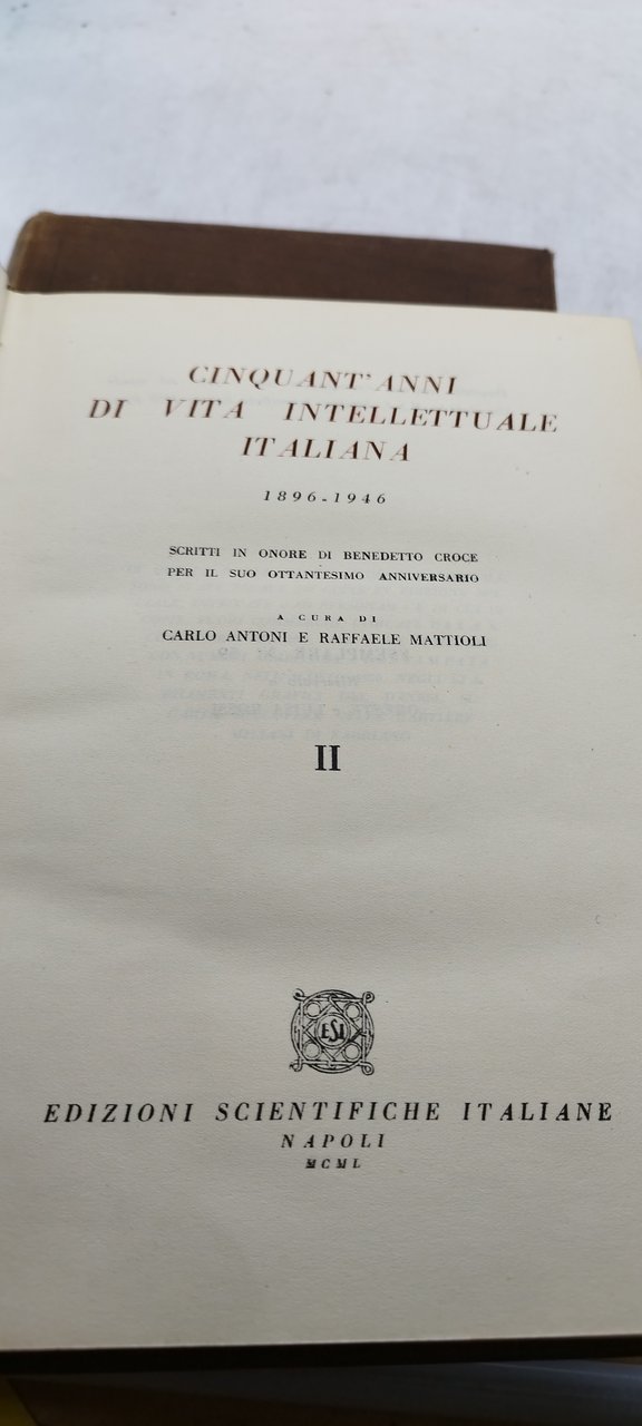 cinquant'anni di vita intellettuale italiana 2 volumi 1896 1946