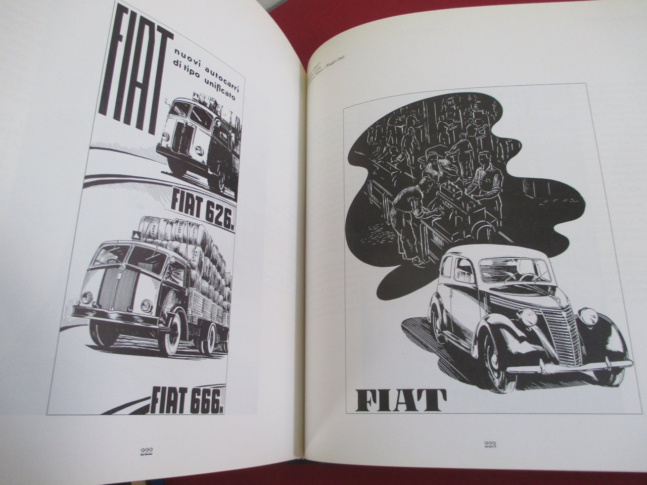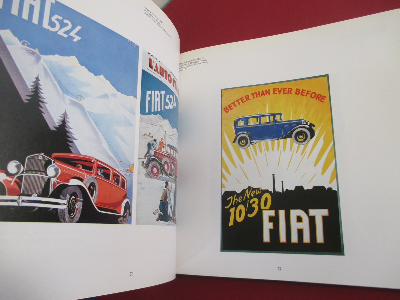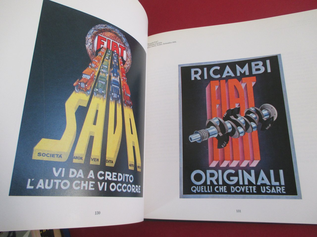 In – 8vo quadro ( misure 27x27 ), legatura editoriale con sovraccoperta illustrata, pp. 286 ( 2 ). Testi introduttivi di Alberto Arbasino e Gianni Bulgari. Completamente illustrato con riproduzioni in nero e a colori di immagini pubblicitarie della FIAT del periodo 1920 – 1970. Tra gli autori delle illustrazioni spiccano Pietro Annigoni, Italo Cremona, Giorgio De Chirico, Marcello Dudovich, Mario Sironi, Luigi Spazzapan, Giuseppe Romano, Mario Puppo, Plinio Codognato, Giorgio Tabet, Leopoldo Metlicovitz, Giuseppe Riccobaldi, Enrico Sacchetti ed altri. Testo in italiano e inglese.