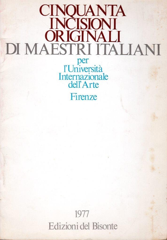 Cinquanta incisioni originali di maestri italiani, prima edizione 1977, formato 16 x 23,5.<BR>Copertina morbida illustrata di colore bianco con titoli in rosso, grigio e celeste al piatto anteriore. All'interno presenti numerose tavole illustrate in b/n. <BR>Lievi fioriture ai piatti. Nel complesso condizioni molto buone.