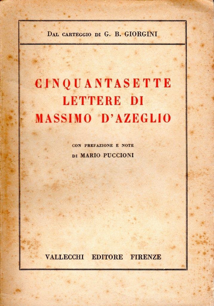 "Cinquantasette lettere di Massimo D¥Azeglio", edizione 1935, pp. 154, formato 14 x 20.