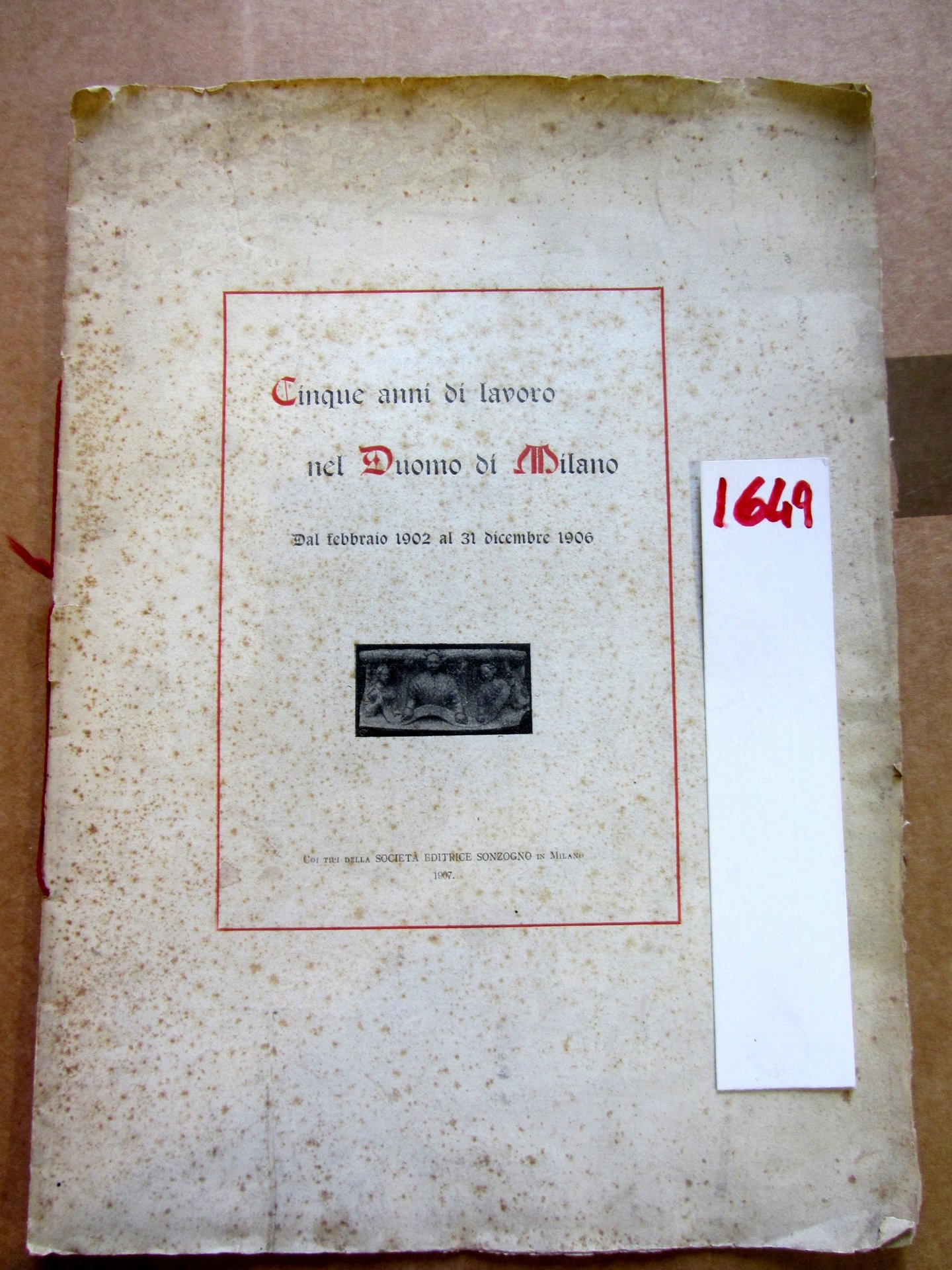 CINQUE ANNI DI LAVORO NEL DUOMO DI MILANO, DAL FEBBRAIO 1902 AL 31 DICEMBRE 1906.,