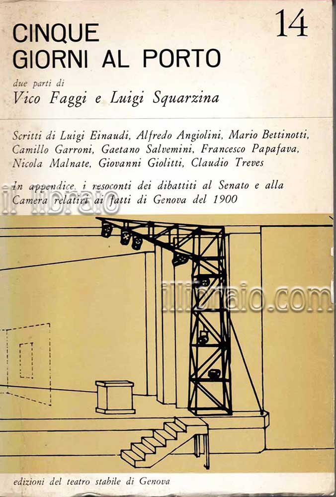 in 8°; pp. 336; br.; coll. Edizioni del Teatro stabile di Genova, # 14. Collaboratore alle ricerche: Edoardo Fadini. Scritti di Luigi Einaudi e molti altri. Rappresentazione teatrale dei drammatici giorni di sciopero a Genova nel 1900.