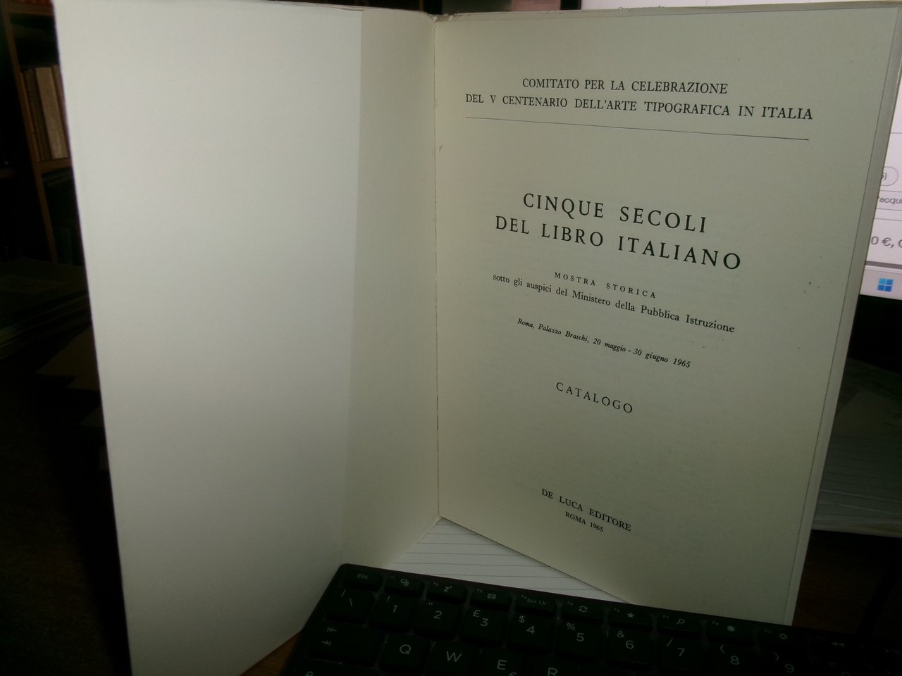 CINQUE SECOLI DEL LIBRO ITALIANO. Mostra storica sotto gli auspici del... 1965