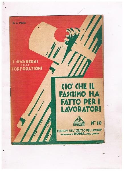Ciò che il fascismo ha fatto per i lavoratori. Quaderni delle corporazioni n° 10.