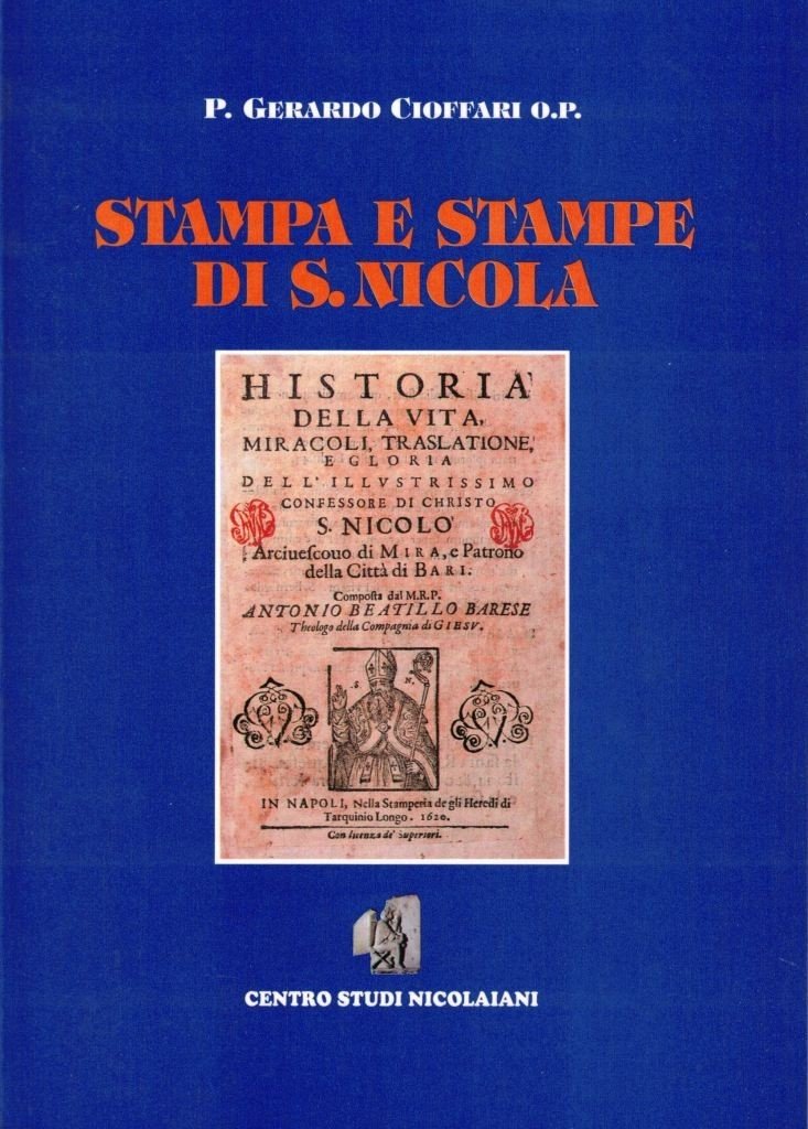 P. Gerardo Cioffari o.p., Stampa e stampe di S. Nicola, Centro Studi Nicolaiani, Bari 2000, pp. 125, ill. col., br. ed. Lievissime tracce d’uso, per il resto perfetto.