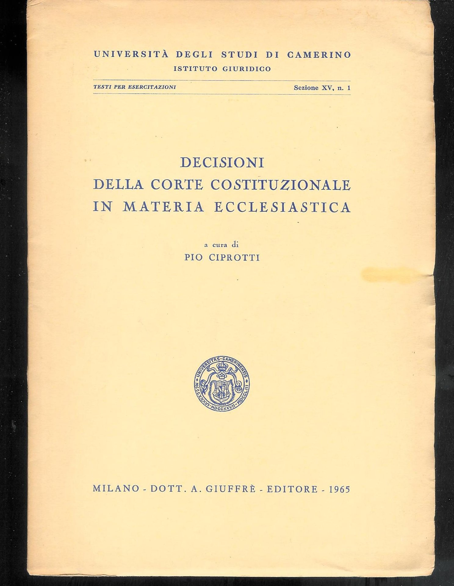 Ciprotti P. - DECISIONI DELLA CORTE COSTITUZIONALE IN MATERIA ECCLESIASTICA.