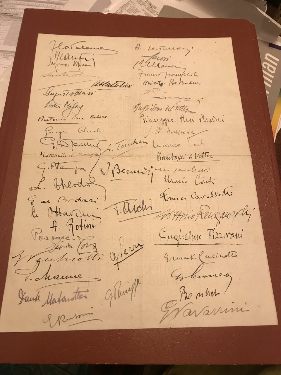 Circa 80 autografi di consoli ed ambasciatori partecipanti alla festa per le nozze dell'ambasciatore Capece di Bugnano con la signorina Antonella Clerici.