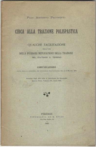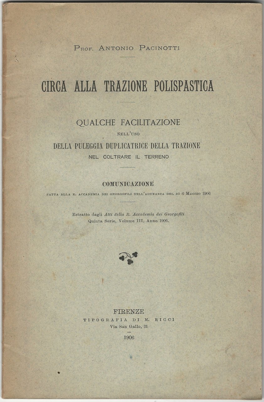 Circa alla trazione polispastica. Qualche facilitazione nell'uso della puleggia duplicatrice della trazione nel coltrare il terreno.