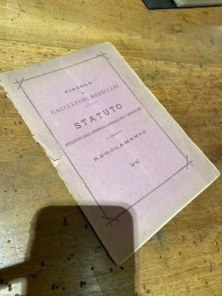 circolo dei cacciatori bresciani: statuto approvato dall'assemblea generale del 6 gennaio 1882