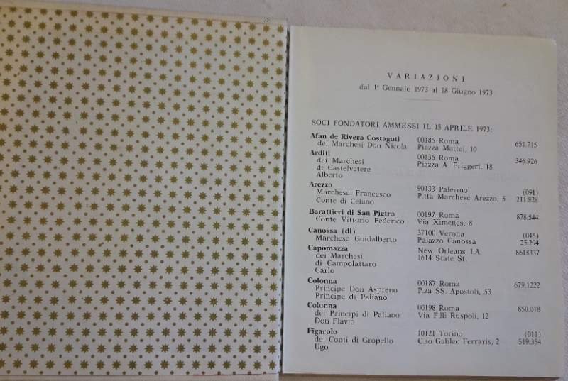 CIRCOLO DELLA CACCIA ROMA-ELENCO DEI SOCI 1972(1972)