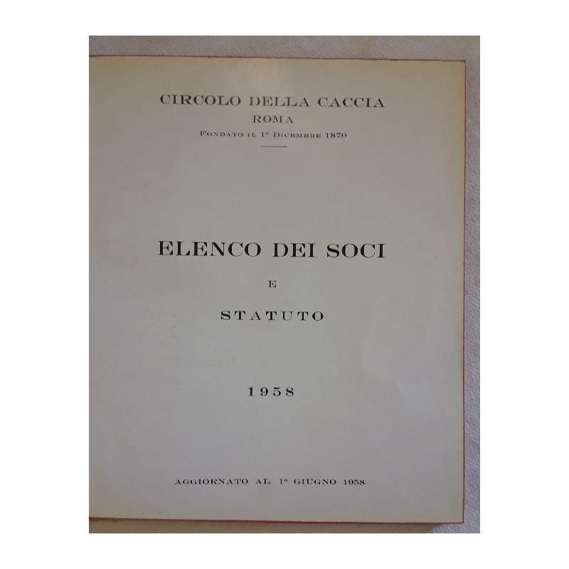 CIRCOLO DELLA CACCIA ROMA-ELENCO DEI SOCI E STATUTO 1958(1958(