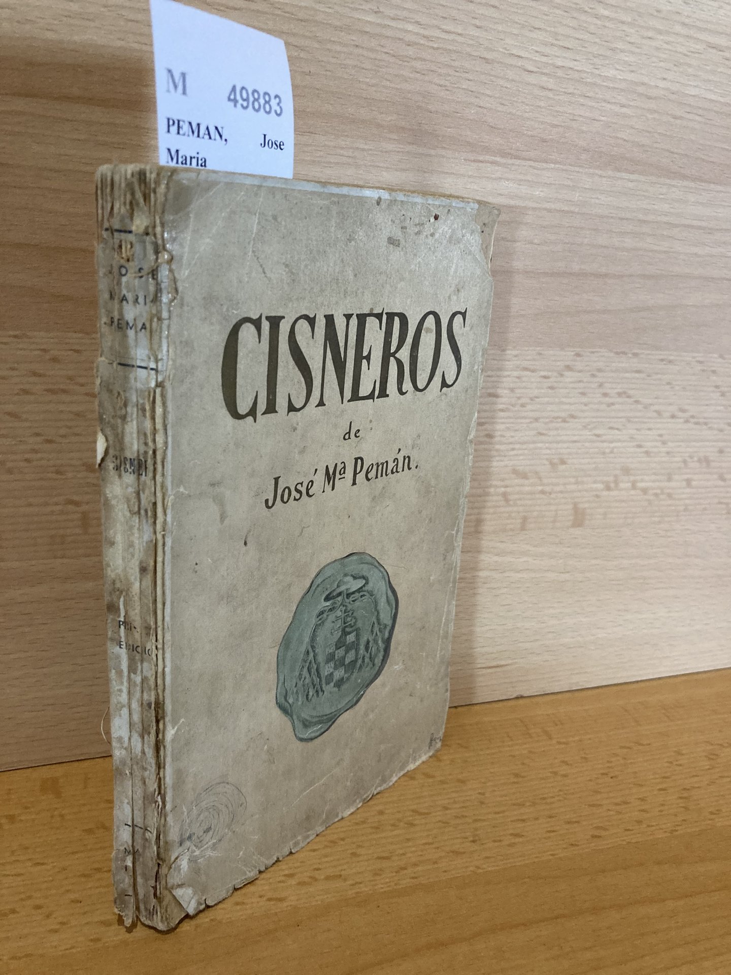 PEMAN, Jose Maria CISNEROS. POEMA DRAMATICO EN TRES ACTOS (EL TERCERO, DIVIDIDO EN DOS CUADROS) Rivadeneyra. Madrid 1934 Primera edicion . 197 p. (19 cm) Enc. rustica. dos fotografias en bn. Fatigado M (Ref.49883) teatro