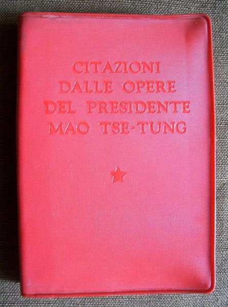 Cm. 13,5 x 9. Pp. (2) iv - 327 (5). Copertina in plastica rossa, con titolo e stella impressa sul primo piatto. Ritratto di Mao seppia protetto da velina, un facsimile dell'iscrizione autografa di Lin Piao e la sua introduzione alla seconda edizione. Ottimo esemplare. Seconda edizione.