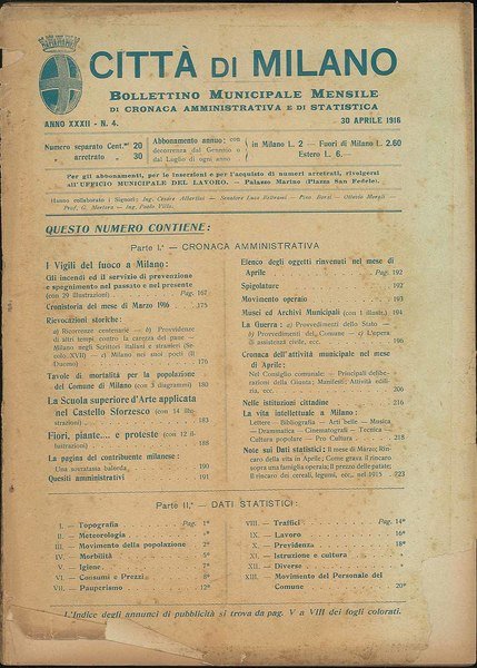 Città di Milano-bollettino municipale mensile di cronaca amministrativa e di statistica