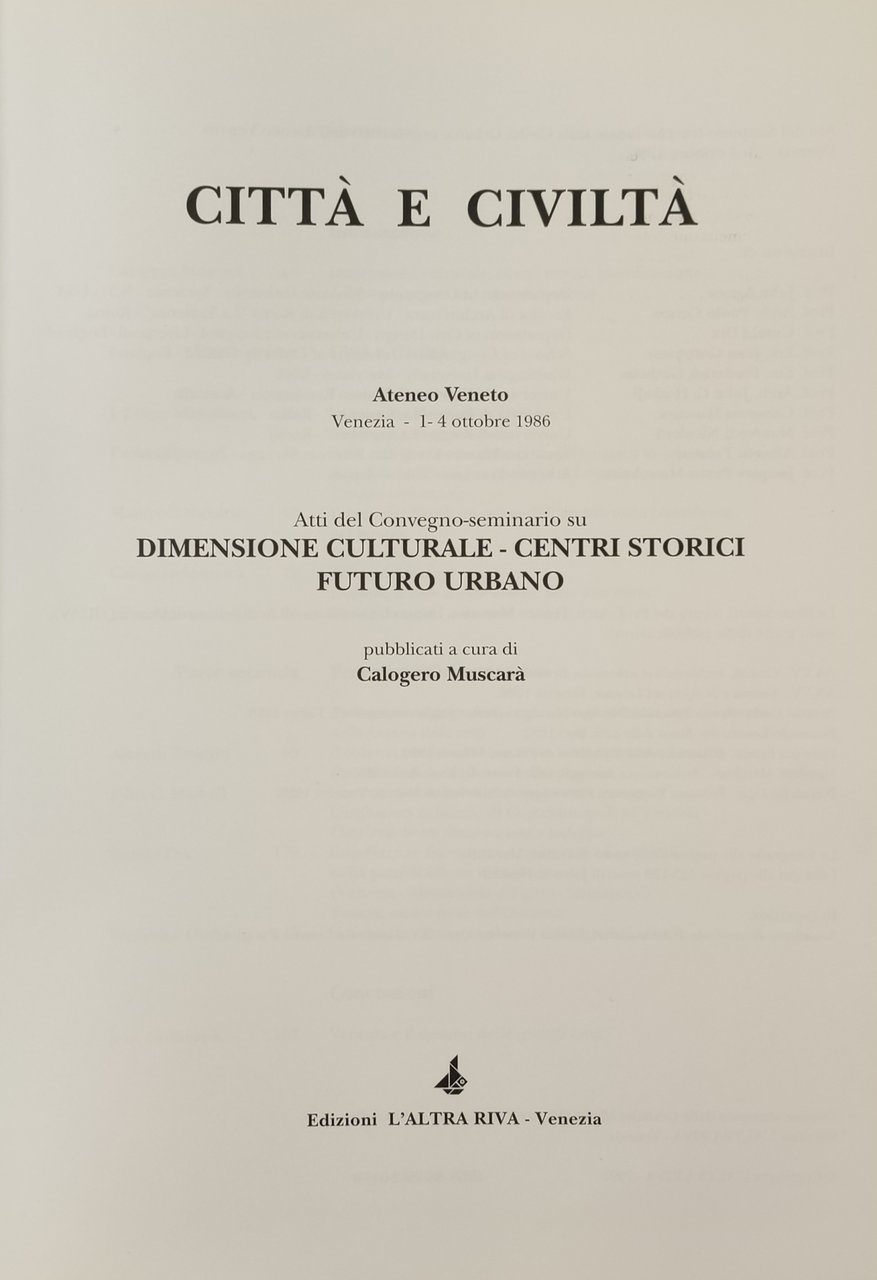 CITTÀ E CIVILTÀ. ATTI DEL CONVEGNO - SEMINARIO SU DIMENSIONE CULTURALE - CENTRI STORICI FUTURO URBANO