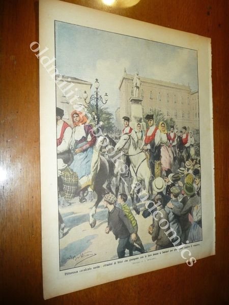 DESCRIZIONE: Domenica del Corriere, Milano, Anno 15 n. 43 (26 ottobre 1913). COPERTINA: Tragedia aerea uno Zeppelin cade. RETRO: Pittoresca cavacata sarda: cittadini di Ittiri che giungono con le loro donne a Sassari per protestare contro il vescovo. La Domenica del Corriere è stato un popolare settimanale italiano fondato a Milano nel 1899 e chiuso nel 1989. Apparve per la prima volta nelle edicole l'8 gennaio 1899 come supplemento illustrato del Corriere della Sera. Stampata in grande formato (sul modello del domenicale La Tribuna illustrata), aveva 12 pagine e veniva distribuita gratis agli abbonati del Corriere, oppure si poteva acquistare in edicola per 10 centesimi. La prima e ultima di copertina erano sempre disegnate. Il Corriere si avvaleva di un giovane disegnatore, Achille Beltrame, allora sconosciuto, a cui veniva affidato in ogni numero il compito di rendere con la sua tavola il fatto più interessante della settimana. Dopo la sua morte nel 1945, fu sostituito da Walter Molino che, come il suo predecessore, firmò memorabili copertine. A differenza dei settimanali dell'epoca, la Domenica del Corriere diede ampio spazio alle fotografie e ai disegni, e questo fu uno dei motivi del suo successo. CONDIZIONI: Buone senza spillette, proveniente da rilegatura, senza sovracc. azzurrina. PESO / WEIGHT: 57 gr. without package.