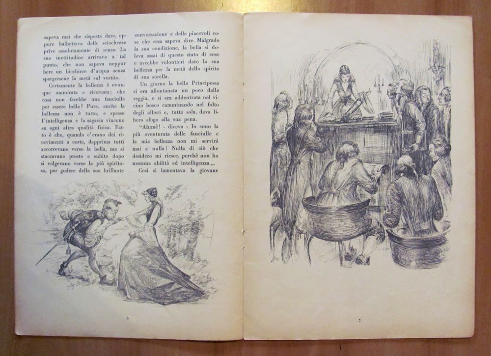 Belle illustrazioni in b/n e a colori in tutte le pagine, anche a piena pagina. Edizioni Cicogna - Milano, anni '60. Brossura editoriale con piccole imperfezioni in basso al dorso e mancanza dell'angolino alto esterno della retrocopertina. 25x34; pp.16. Raro e in Buonissimo stato. ,