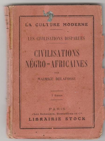 CIVILISATIONS N…GRO-AFRICAINES MAURICE DELAFOSSE EDIT… PAR STOCK 1925 L5847 COPERTINA MORBIDA EDITORIALE CON PICCOLI STRAPPI AI MARGINI, DORSO CON STRAPPI E MANCANZE, LIBRO LEGGERMENTE DEFORMATO, IN PRECARIE CONDIZIONI, ANTIPORTA CON NUMEROSI APPUNTI A MATITA, TAGLI IRREGOLARI, ALL'INTERNO SOTTOLINEATURE E NOTE AI MARGINI IN FRANCESE N. PAG. 142 CM. 14,5 X 10,5