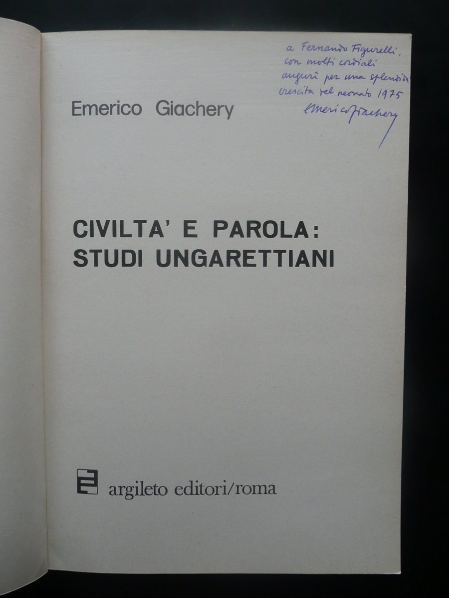 Civilt‡ e Parola Studi Ungarettiani Emerico Giachery Argileto 1974 Autografo