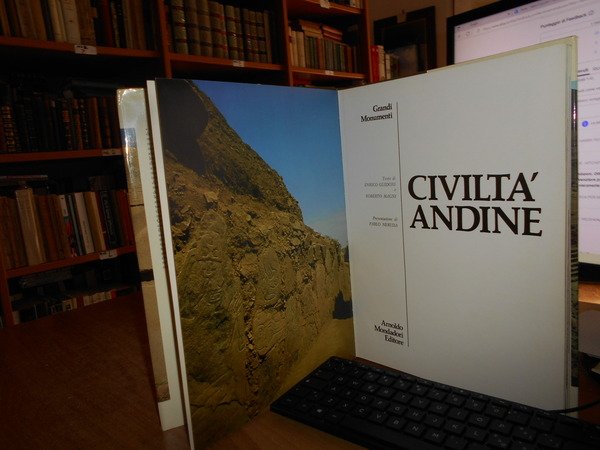 Presentazione di PABLO NERUDA. Milano, Arnoldo Mondadori, 1972. CIVILTA' ANDINE. In4° grande, tela edit. con titoli in oro sul piano e al dorso, sovracopertina ill. a col. 189 pp. con numerose illustrazioni fotografiche a colori anche a piena pagina. Ottimo stato. Uff. stanzetta mob. a destra in basso