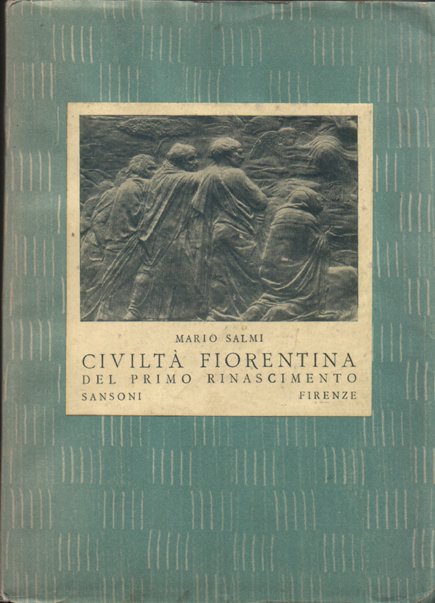 In-8°, pp. 47, (3) e 100 tavole fuori testo di illustrazioni in bianco e nero raffiguranti opere di Donatello, Paolo Uccello, Giotto, Brunelleschi, Alberti, Michelozzo, Giuliano da Sangallo, Lorenzo Ghiberti, Luca della Robbia, Desiderio da Settignano, Benedetto da Maiano, Verrocchio, Antonio del Pollaiolo, Masaccio, Beato Angelico, Giovanni di Francesco, Andrea del Castagno, Domenico Veneziano, Alesso Baldovinetti, Domenico Ghirlandaio, Filippino Lippi, Botticelli, Piero della Francesca.