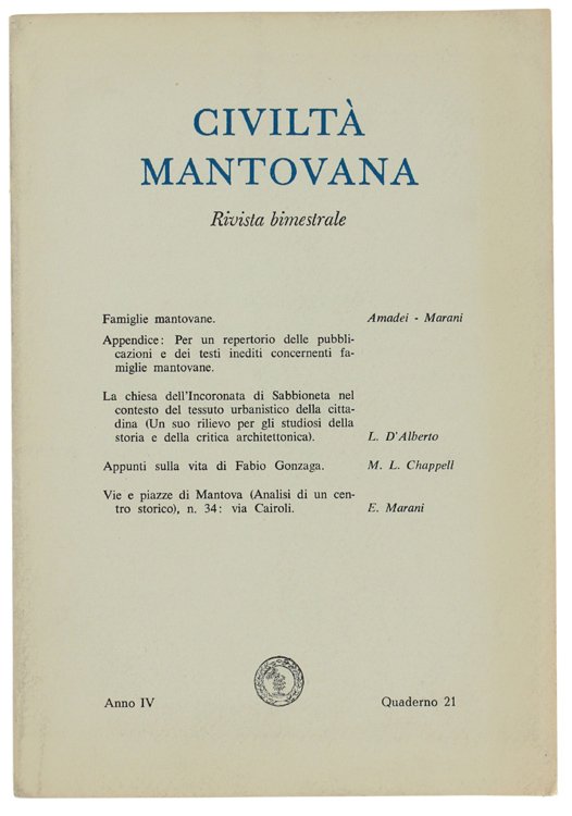 CIVILTA' MANTOVANA. Anno IV - 1970. Quaderno 21.