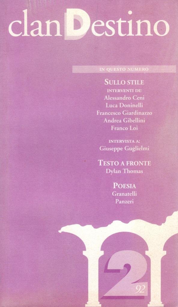 ClanDestino, prima edizione 1992, anno V, numero 2, pp. 95, formato 12 x 21.Copertina morbida color viola con titoli in bianco al piatto anteriore e sulla costola. Progetto grafico Alpha libri.Direttore responsabile Gianni Varni.Ottime condizioni.
