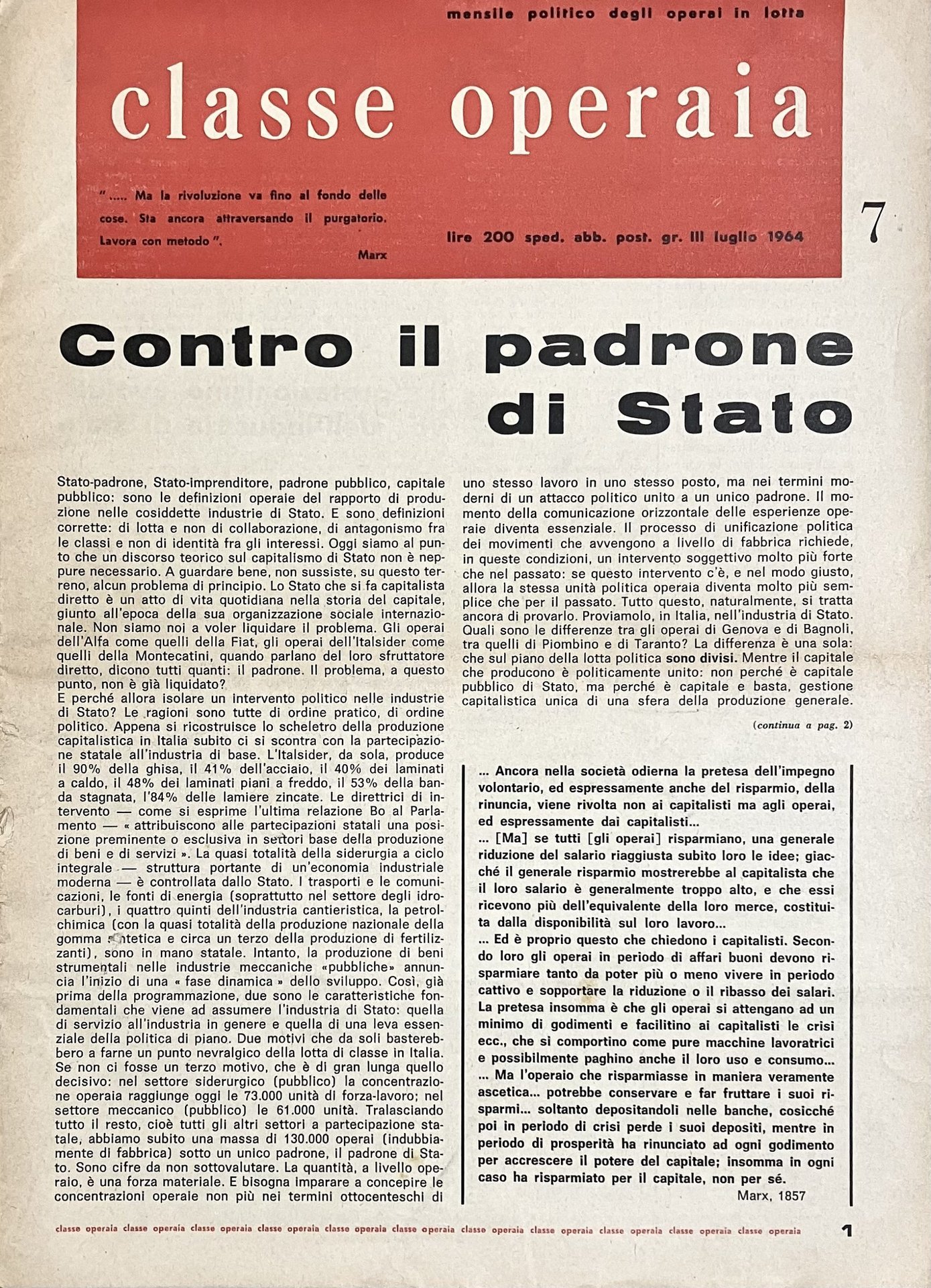 Classe operaia. Mensile politico degli operai in lotta. N. 7. Luglio 1964. CONTRO IL PADRONE DI STATO