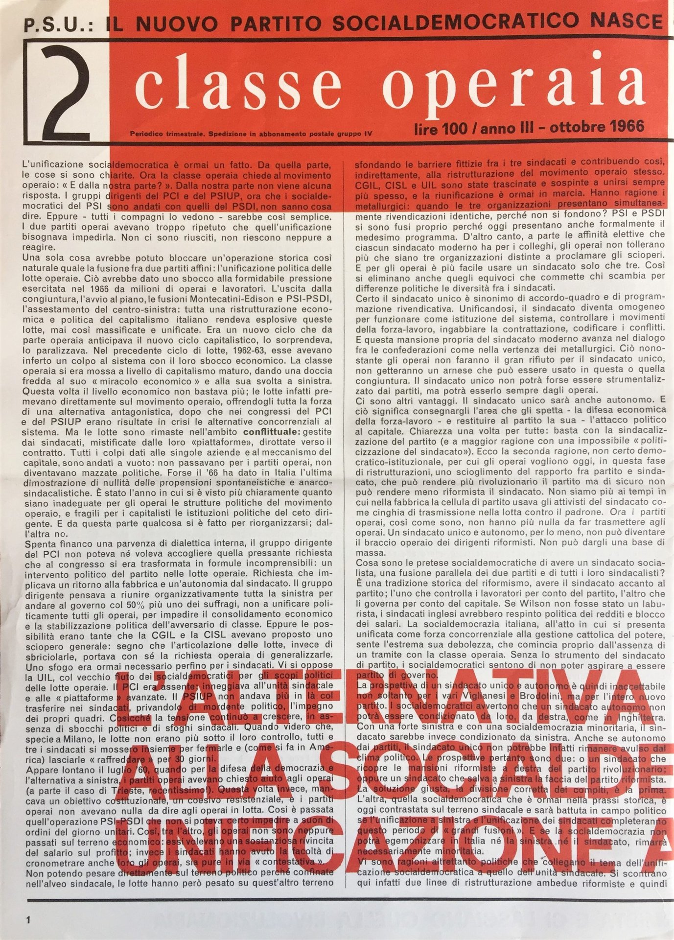 Classe operaia. Periodico politico. Anno III No. 2. Ottobre 1966