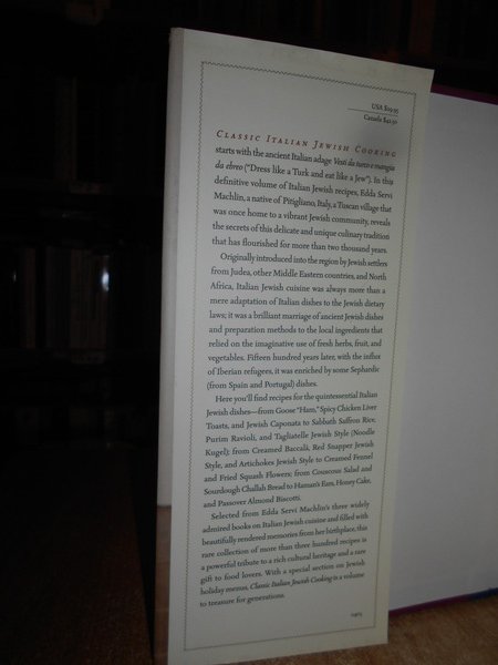 EDDA SERVI MACHLIN. New York, Harper Collins, 2005. Classic Italian Jewish Cooking. In-8°, m. tela con titolo in oro al dorso. xiv, 418 pp. con disegni n.t. e numerose ricette. Testo in inglese. Stanzetta mob. sinistra dietro 1. carc. 2 copie a euro 70 cad,