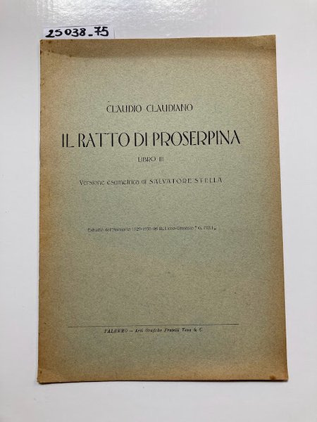 Claudio Claudiano: Il ratto di Prosperina libro III