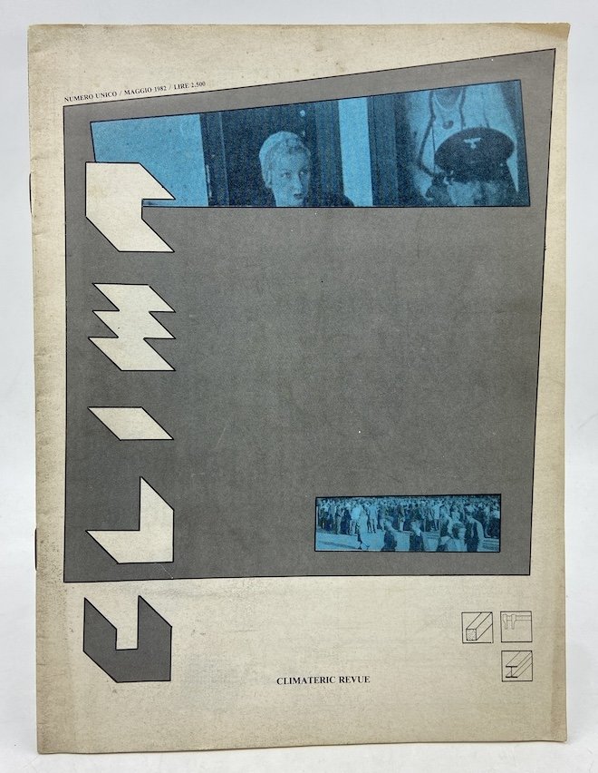 Fascicolo spillato in brossura, copertina in bicromia, pp 24 incluse copertine con numerose illustrazioni in nero. Buono stato di conservazione. Numero unico pubblicato a Torino nel maggio 1982, “prodotto e diretto” da Giulio Tedeschi, nume tutelare dell’autoproduzione musicale e poetica italiana, discografico con la Meccano Records e la Toast Records, animatore di riviste di poesia e ricerca visiva (Camion, Tampax), fondatore del Centro di documentazione e diffusione stampa alternativa Pancho Villa e dell’archivio diffuso dell’underground italiano, Operazione Robinson. CLIMA raccoglieva sperimentazioni grafico-fumettistiche del periodo, con coordinamento di Edoardo Di Mauro, progetto grafico di Mauro Lavagetto e Raffaello Ferrazzi, e lavori (oltre che dei suddetti), di Andrea Renzini, Luciano Serra Pilota (pseudonimo d’esordio di Stefano Righi, più noto come Johnson Righeira) e altri nascosti sotto le sigle S. Aldo, Bio Nastro, Mary Page. In terza di copertina, annunci delle molteplici attività musicali di Giulio Tedeschi, sotto l’insegna: CONTRO L’IMMOBILISMO 10-100-1000 PRODUZIONI AUTOGESTITE.