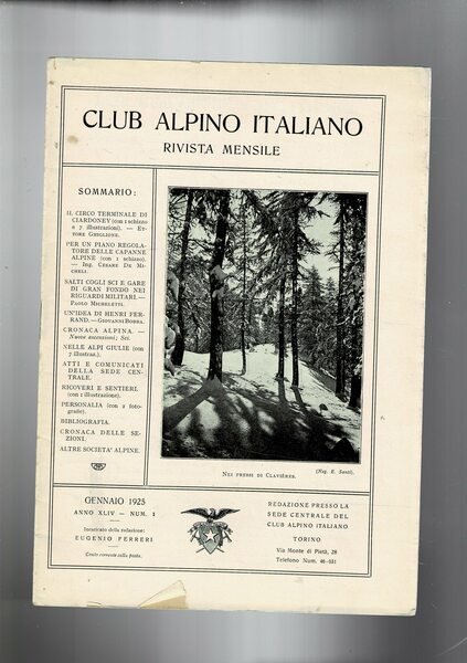 Club Alpino Italiano rivista mensile disponiamo dell'annta completa del 1925. L'ultimo fasc. comprende nov-dic.