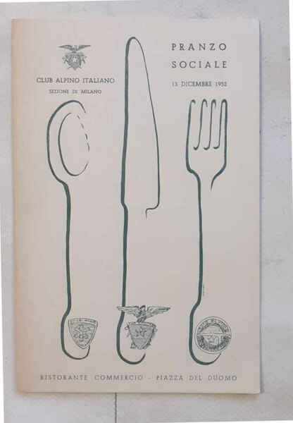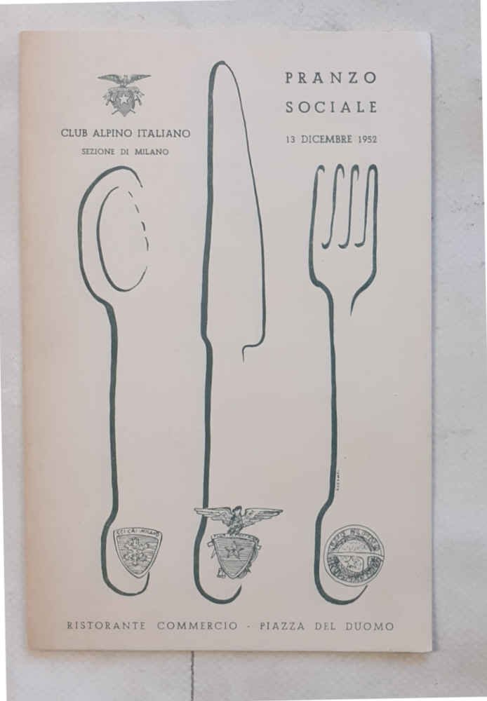 Club Alpino Italiano Sezione di Milano. Pranzo sociale 13 dicembre 1952. Ristorante Commercio - Piazza del Duomo.