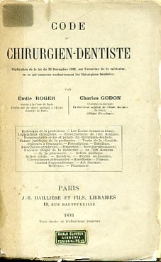 Code Chirurgien - Dentiste. Explication de la loi du 30 Novembre 1892, sur l'exercise de la médecine, en ce qui concerne exclusivement les Chirurgiens - Dentistes