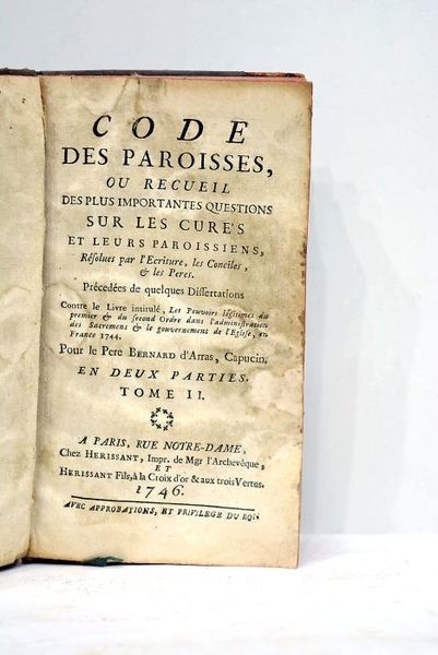Code des paroisses, ou Recueil des plus importantes questions sur les curés et leurs paroissiens, résolues par l'Ecriture, les Conciles, et les Peres. Contre le livre intitutlé Les pouvoirs légitimes des premier et du second Ordre dans l'administration des Sacrements et le gouvernement de l'Eglise, en France 1744. En deux parties. Tome II.