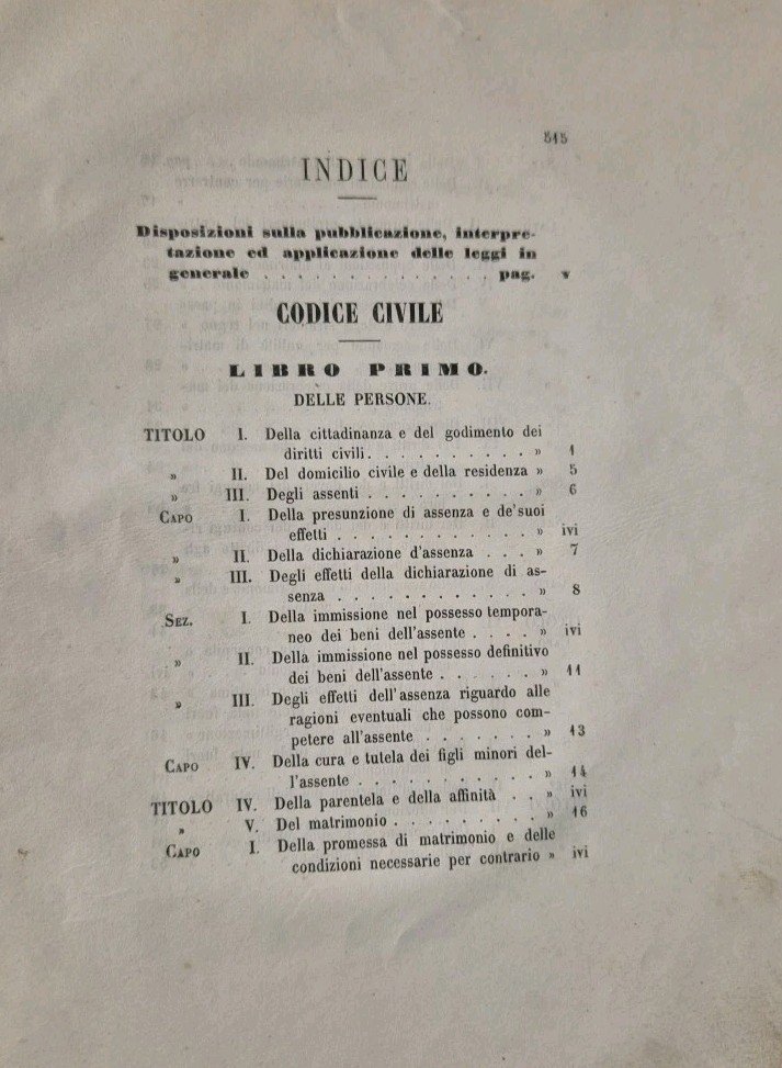 CODICE CIVILE DEL REGNO D’ITALIA Torino Stamperia Reale 1865 Libro antico diritt