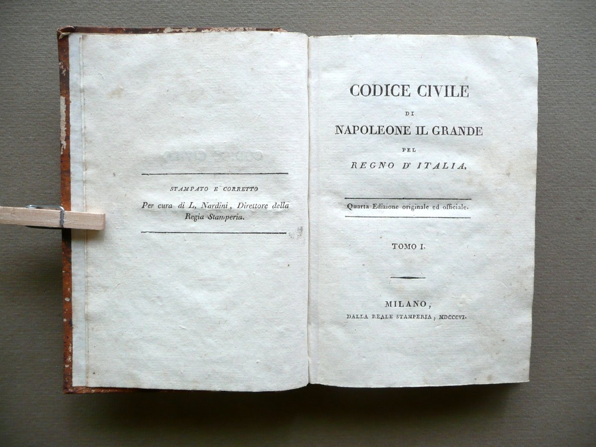 Codice Civile di Napoleone il Grande pel Regno d'Italia Milano 1806 Tomo I