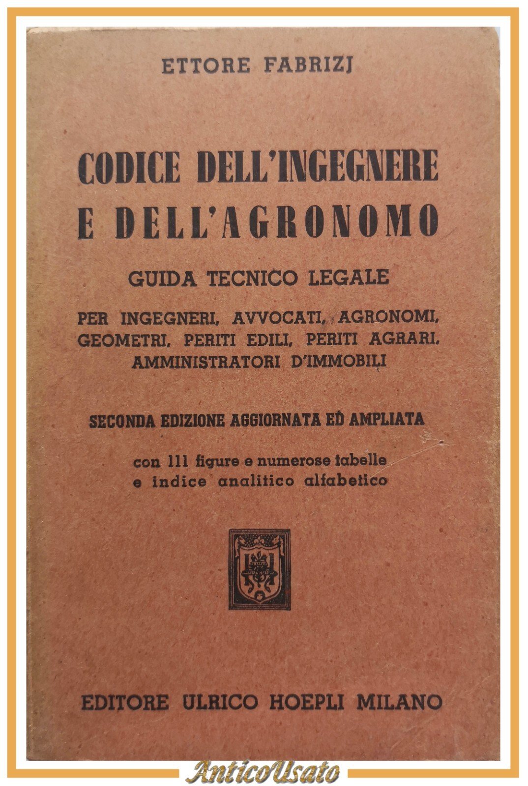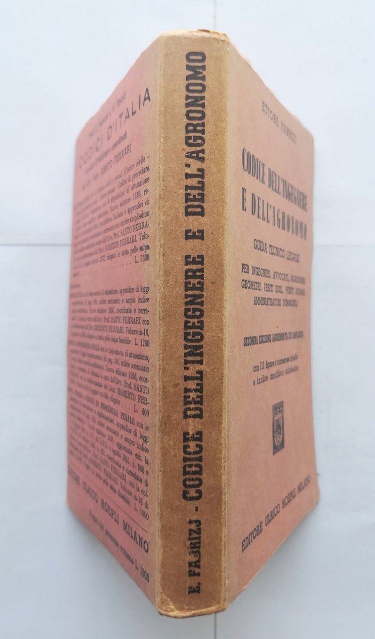 CODICE DELL'INGEGNERE E DELL'AGRONOMO di Ettore Fabrizi 1956 Hoepli Libro guida