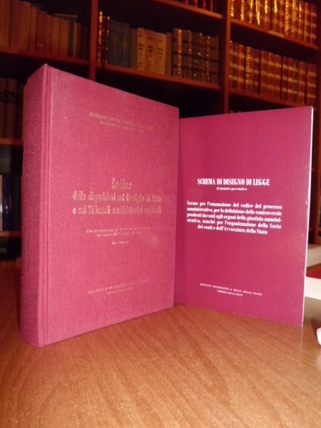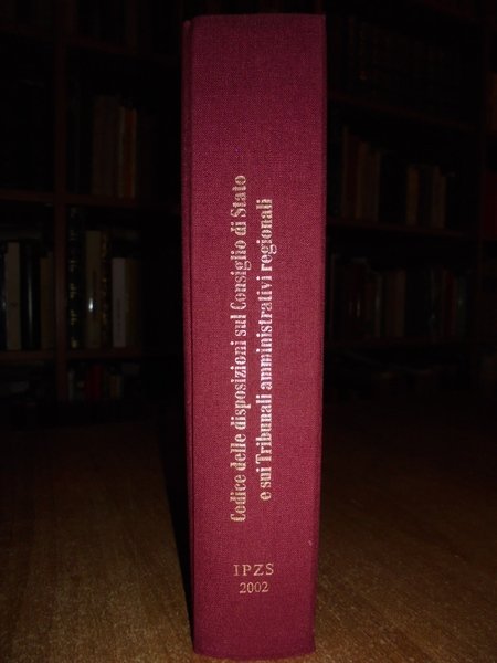 Codice delle disposizioni sul Consiglio di Stato e sui Tribunali amministrativi regionali. Magistrati del Consiglio di Stato: Rosario Lanza - Pasquale De Lise. Con presentazione di Alberto De Roberto, Presidente del Consiglio di Stato. Roma, Istituto Poligrafico dello Stato, Libreria dello Stato, 2002. In - 8° piccolo, tela con i titoli in oro. 690 pp. Allegato un inserto con copertina edit. di 38 pp. Come nuovo. Neg. mob. nero
