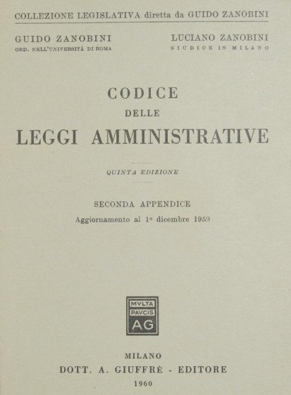 Seconda appendice. Aggiornamento al 1° dicembre 1959 - Quinta edizione - Collana Collezione legislativa diretta da Guido Zanobini - in 16° - pp.930 - Brossura editoriale