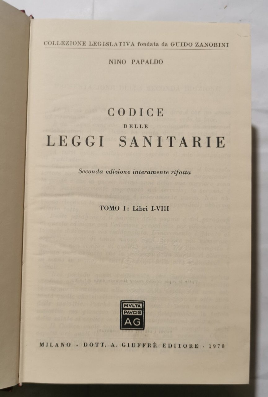 Codice delle leggi sanitarie - Tomo I libri I- VIII