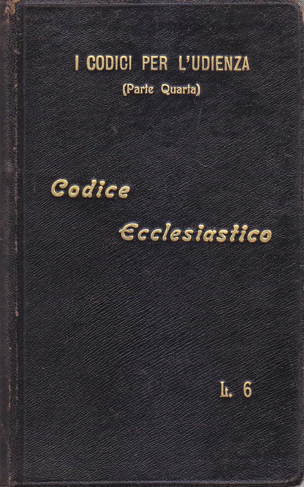 CODICE ECCLESIASTICO La Legislazione Ecclesiastica Vigente. UTET editore, 1910.