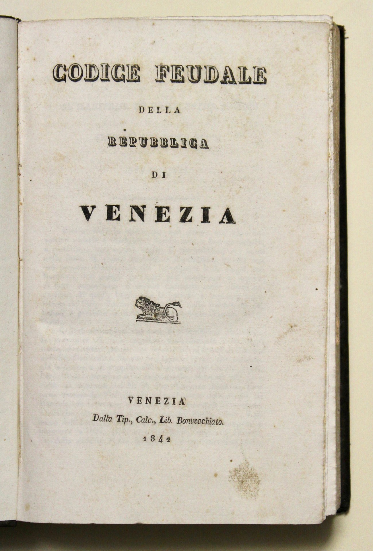In 8° (235x150); 8 pp., CLVIII cc., 477 pp., 25 pp.; tela coeva con filetti e titolo dorati al dorso. Interessantissimo codice contenente una molteplicità di leggi del governo della repubblica: sono raccolti i decreti dal 1328 al 1780; si tratta fra l'altro dei privilegi del Friuli, alcune delibere riguardano Udine, i Vicariati nel Veronese, l'abbazia di san Zeno, feudi nel Polesine, Cividale del Friuli, licenze d'armi da fuoco, processi criminali, fisco, feudi ecc. Alla fine in appendice vi sono alcuni decreti italici ed austriaci emanati in materia di feudi fino al 1837. <BR>Splendido esemplare con barbe, piccolo difetto ad una cerniera. Cicogna, 1239. <BR><BR>